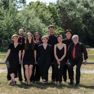Die Chorstandschaft des KJC (vorne v.l.n.r. Karo Kraus, Dorothea Großkopf, Paula Wurmthaler, Rebecca Böhm, Wolfgang Reh; hinten v.l.n.r. Jonas Helmreich, Tina Dengler, Fabian Nehr, Xincheng Miao)